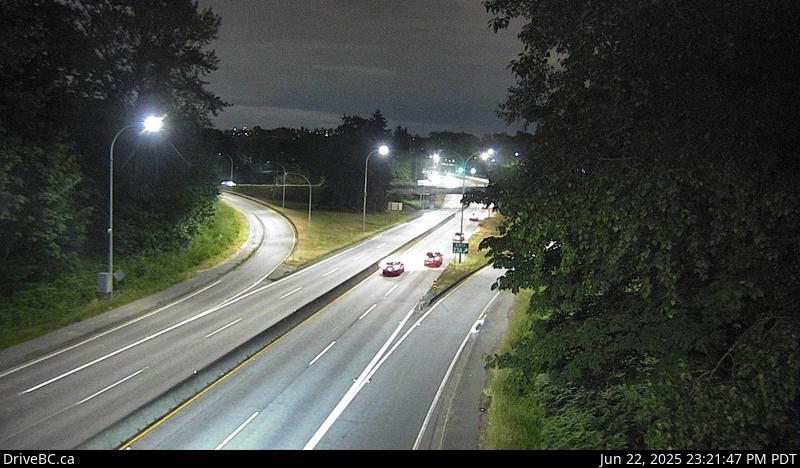 Looking north from the same location, this camera shows traffic flowing deeper into North Vancouver. It’s a useful checkpoint for understanding whether volume is clearing from the bridge or stacking up along Highway 1’s northern lanes.