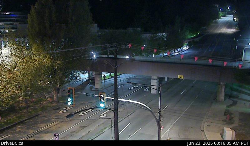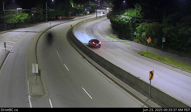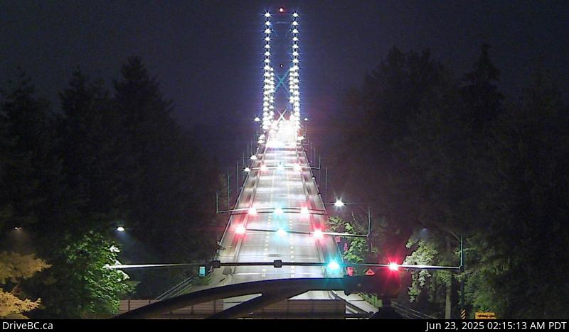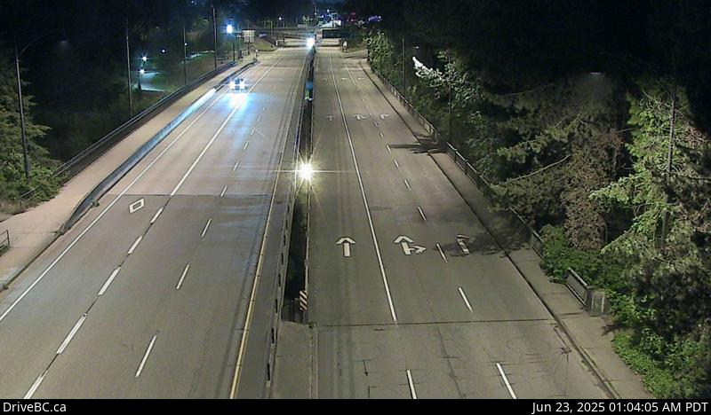 Positioned at the southern mouth of the Stanley Park Causeway, this camera looks north into the forested corridor that leads directly to the bridge deck. This stretch is known for its narrow lanes, limited shoulders, and bottlenecks during peak hours. Drivers can use this view to determine whether traffic is flowing smoothly or whether backups are forming before the bridge span begins.